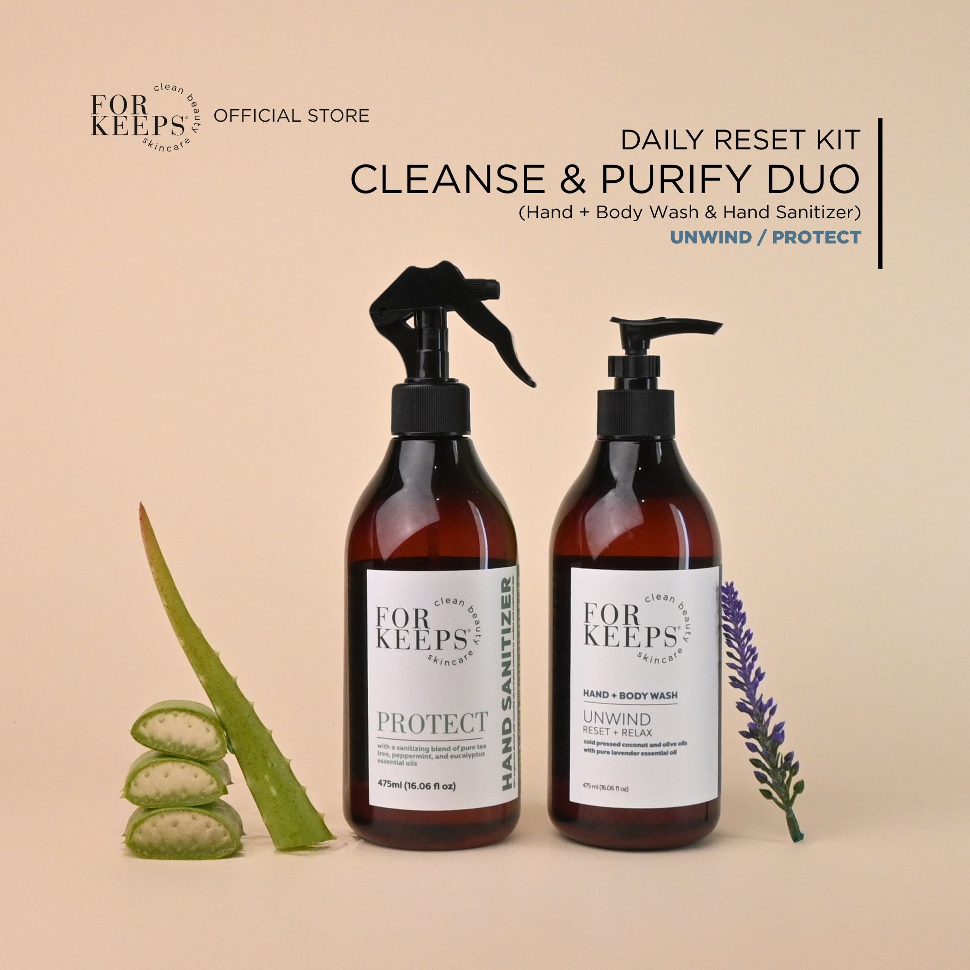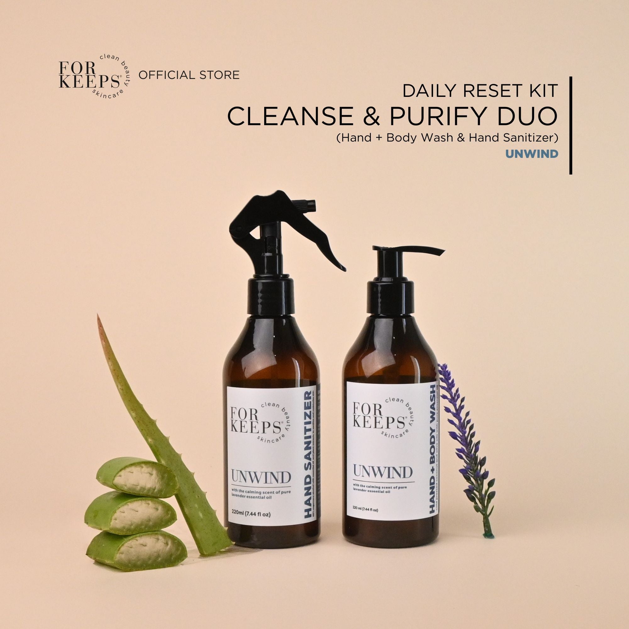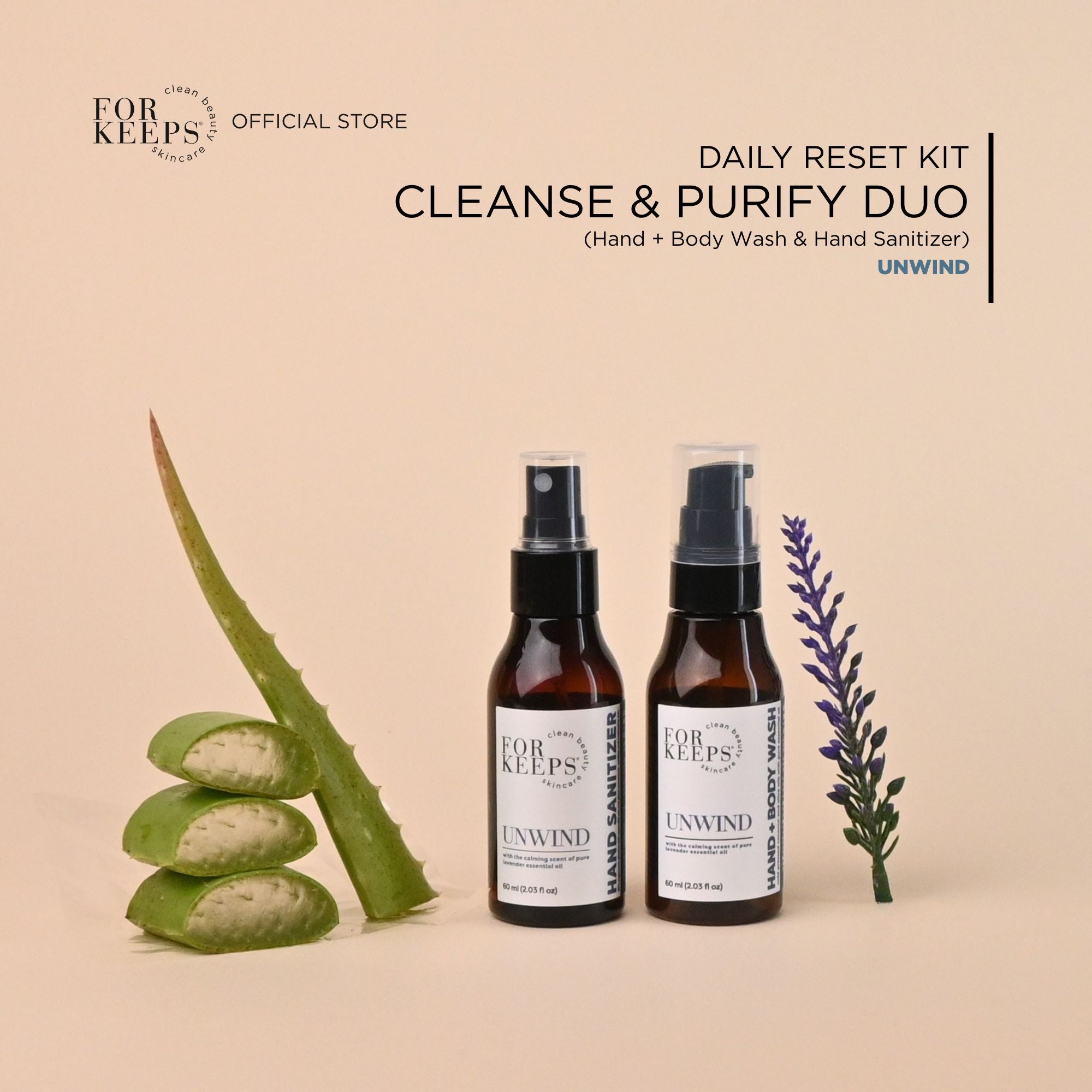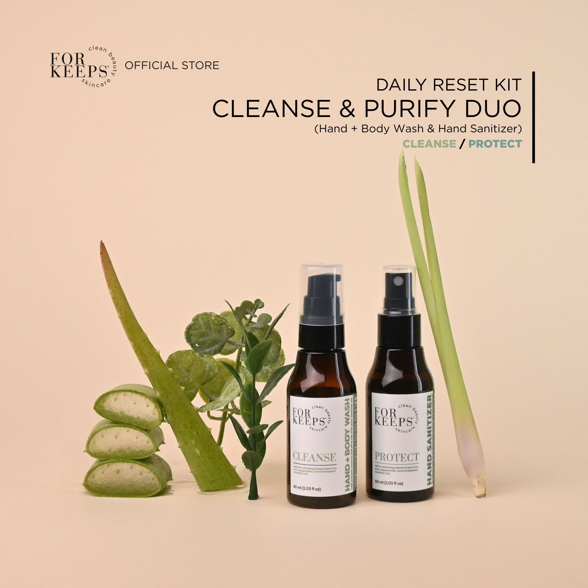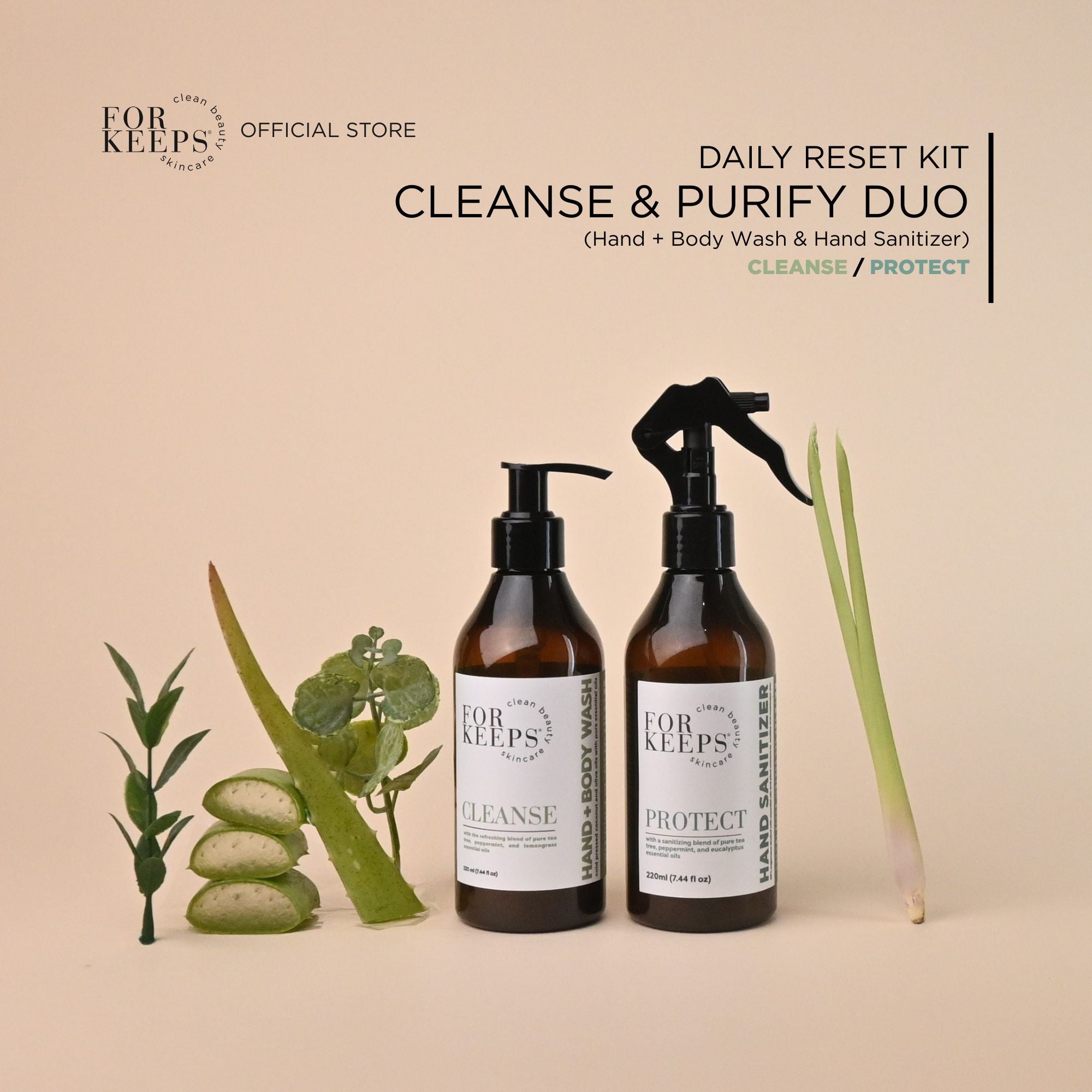 The Daily Reset Kit - Cleanse & Purify Duo brings together our gentle Hand + Body Wash and our refreshing Hand Sanitizer for clean, balanced skin from morning routines to on-the-go moments.