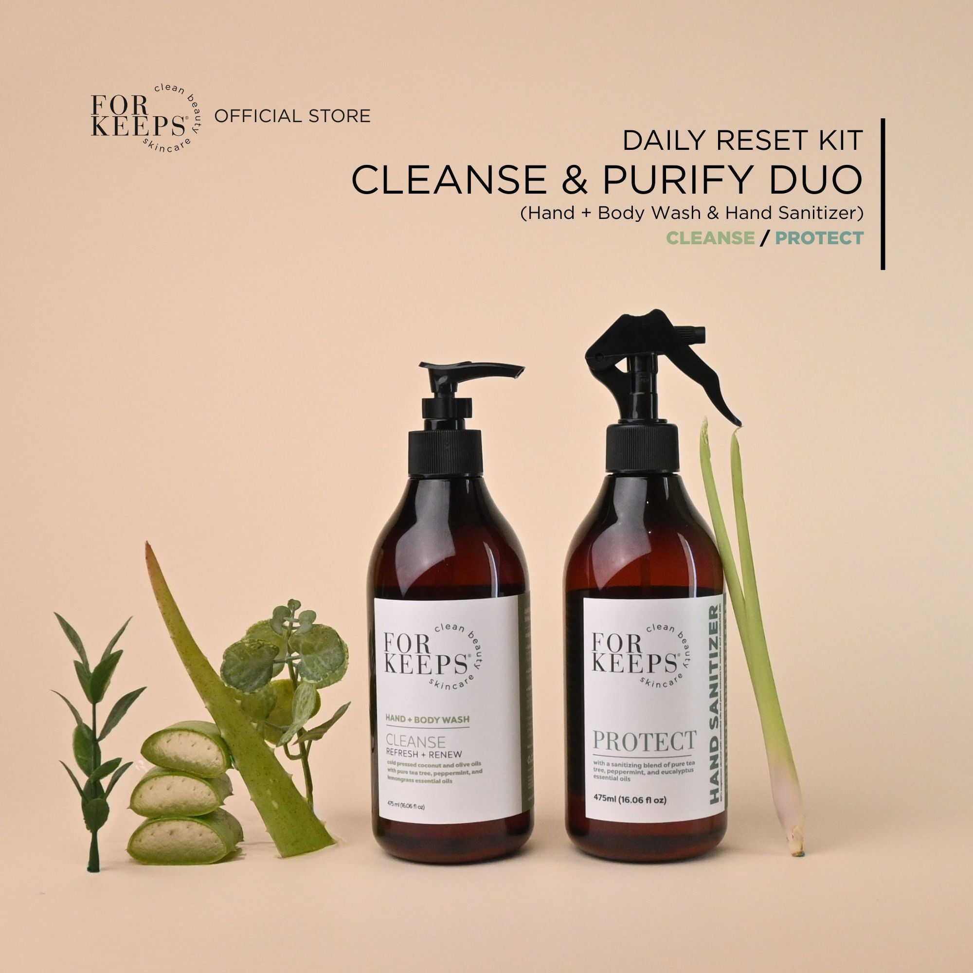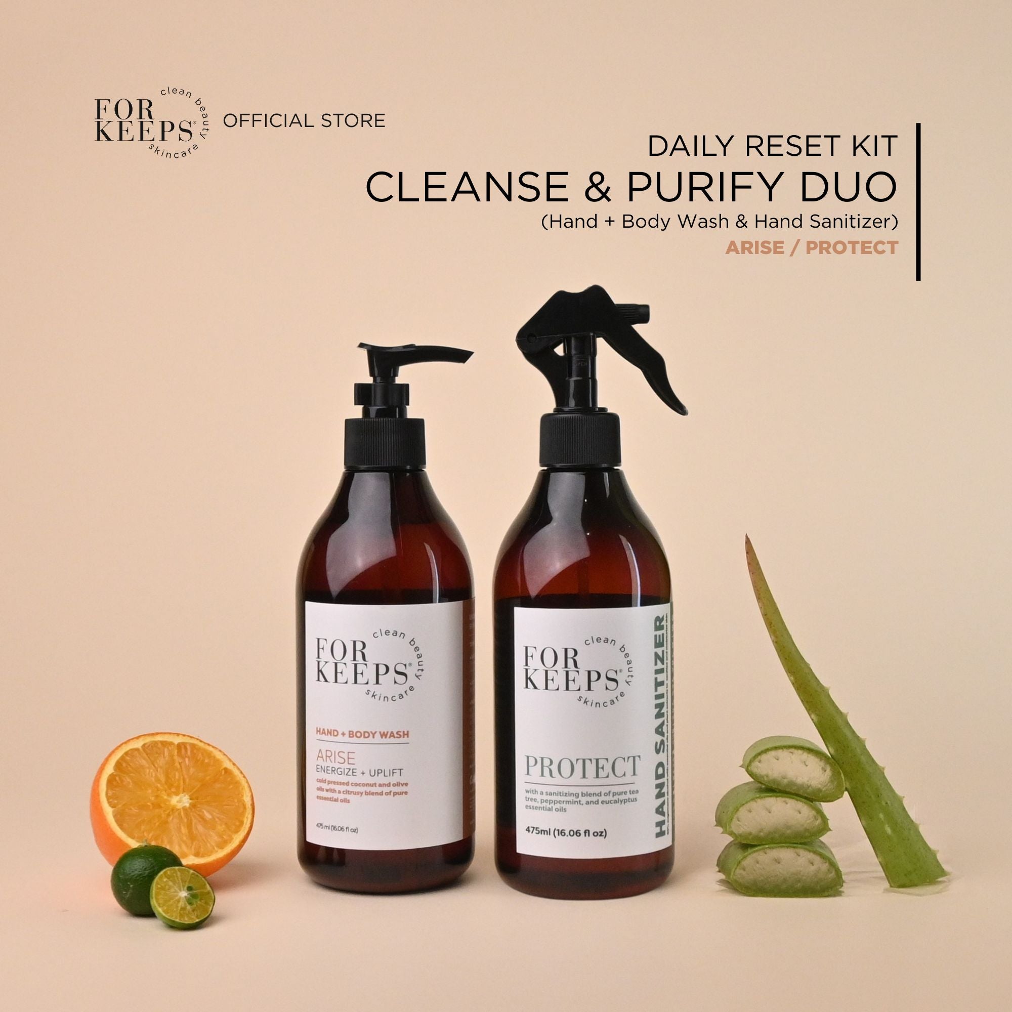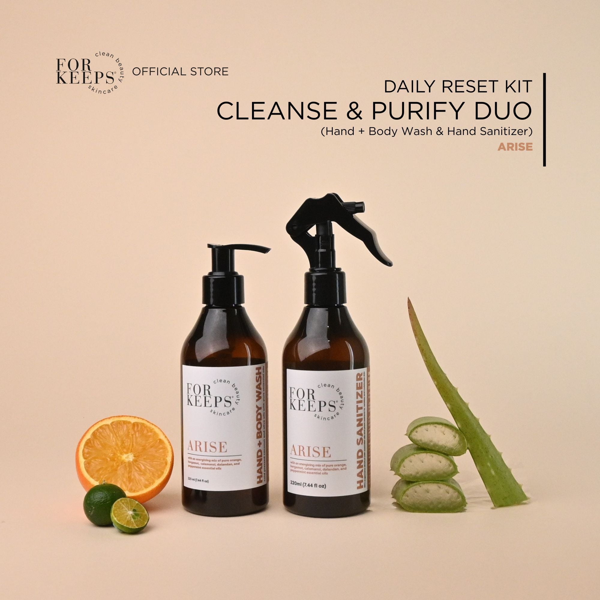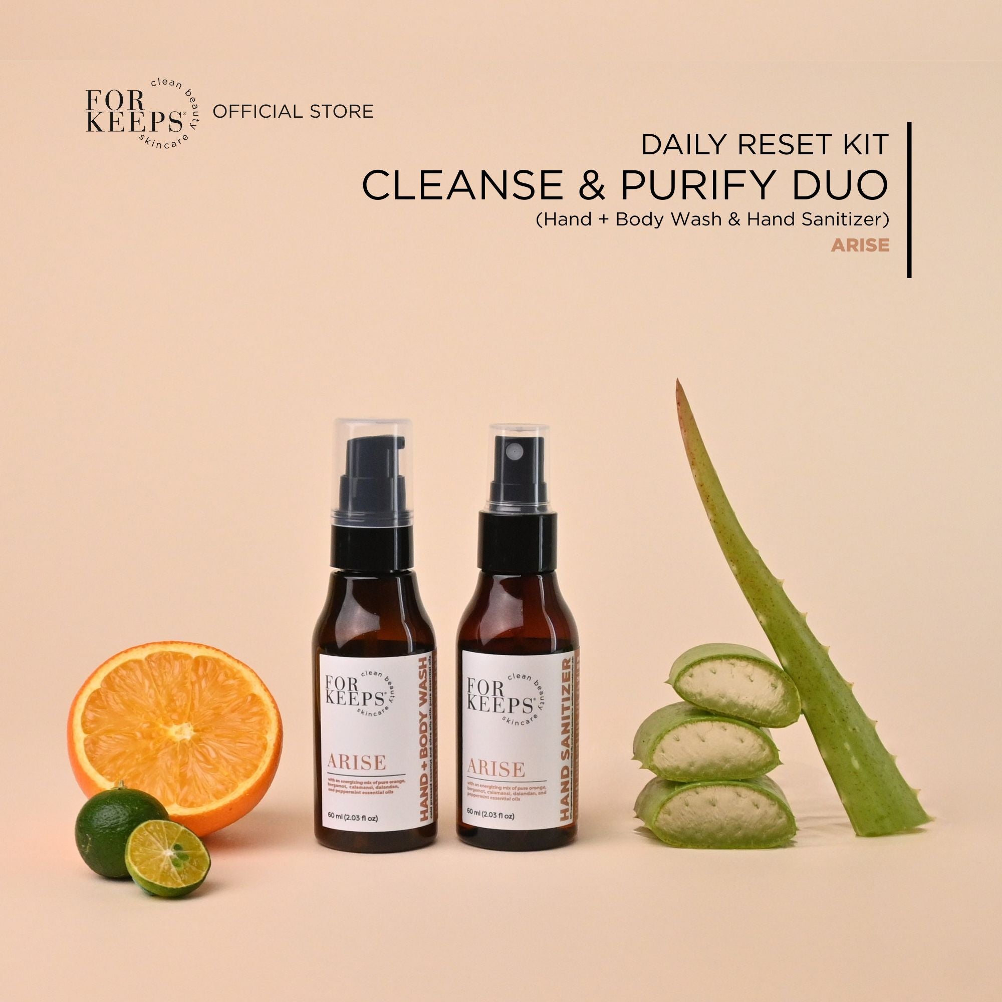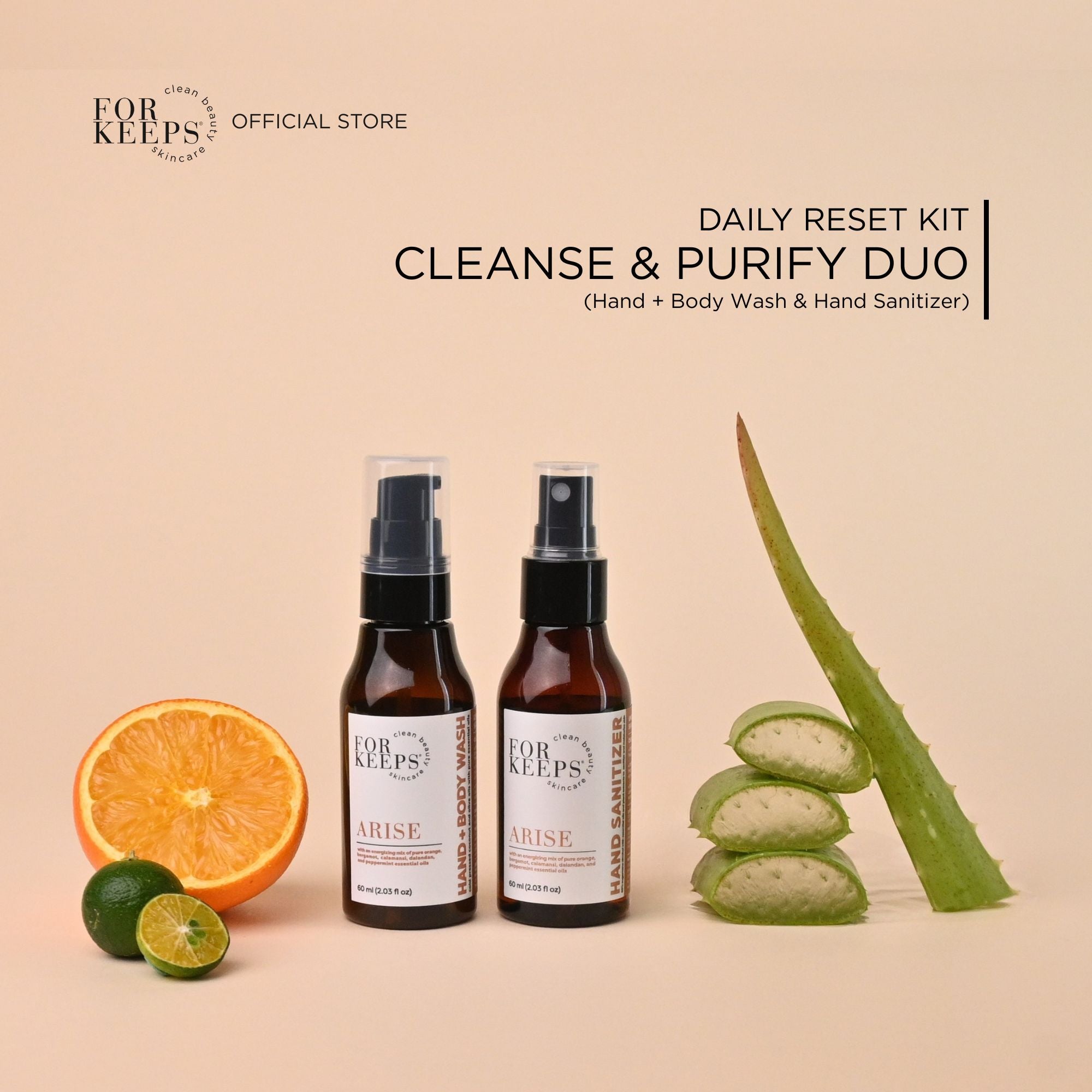 The Daily Reset Kit - Cleanse & Purify Duo brings together our gentle Hand + Body Wash and our refreshing Hand Sanitizer for clean, balanced skin from morning routines to on-the-go moments.