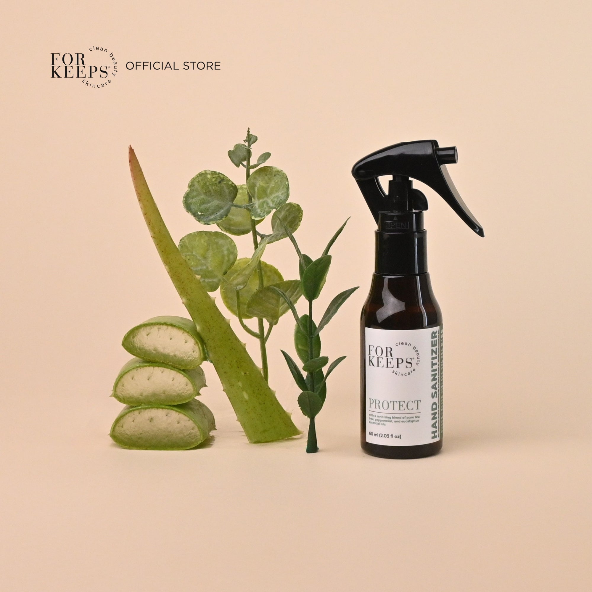 PROTECT is a non-drying and high-performing sanitizer with 65% ethyl alcohol, aloe vera, and a blend of tea tree, peppermint, and eucalyptus essential oils for that on-the-go round-the-clock protection and skin hydration.
