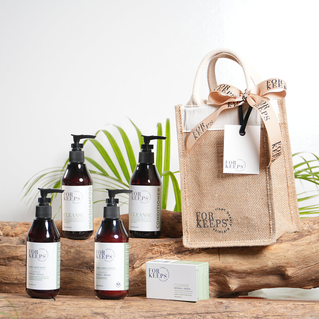 Our clean beauty products are perfect for gifting to loved ones or treating yourself. With our exclusive DIY Gift Sets, you can share the joy of sustainable and premium skincare while receiving beautiful, eco-friendly baskets and bags.