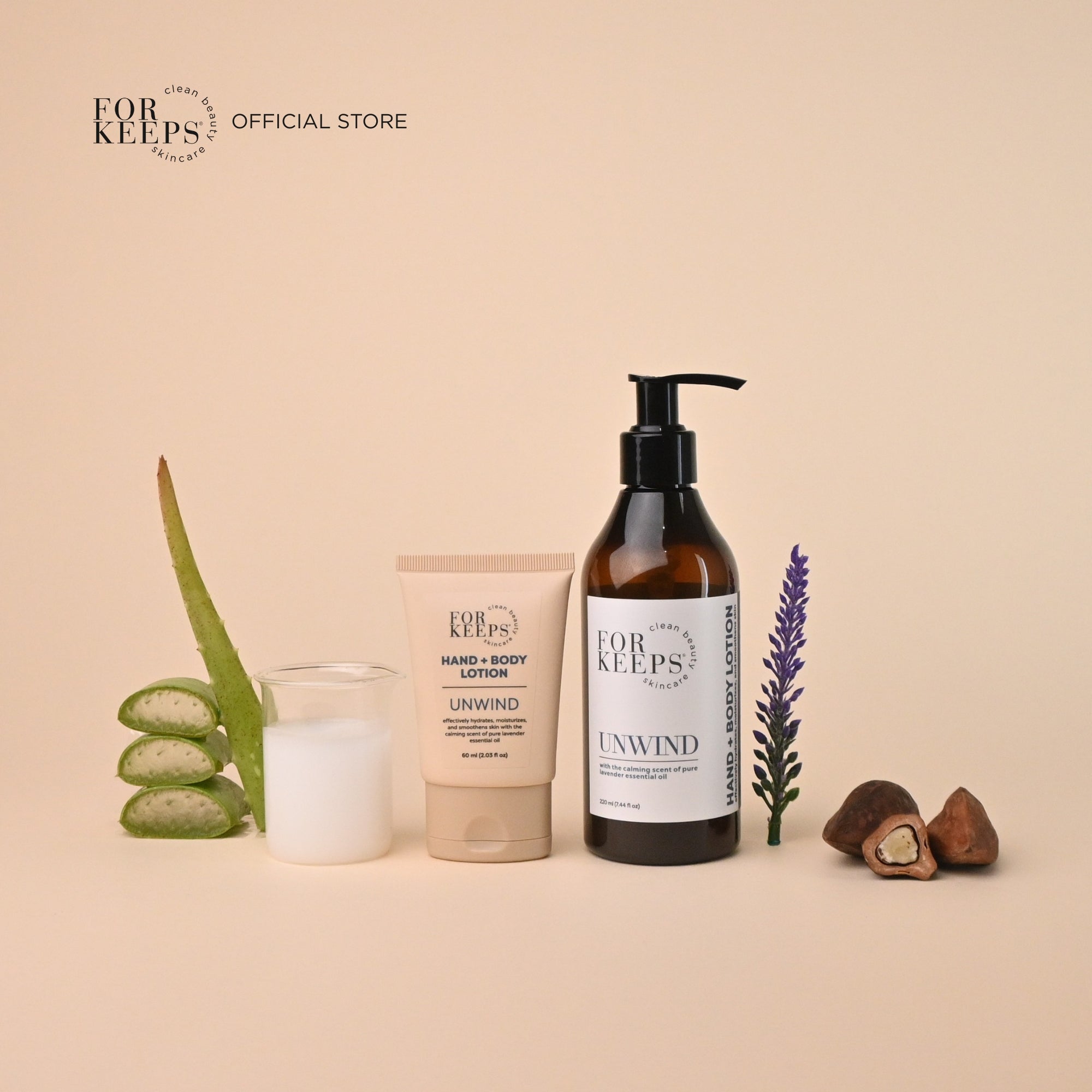 Compared to many lotions that would count on mineral oil, paraffin wax, synthetic emulsifiers, and toxic preservatives, our turns to superpowers of beautiful raw wet-milled VCO, cold pressed Pili nut oil, and MCT for both nourishing benefits and quick active ingredient delivery deep into the skin. Aloe Vera soothes and moisturizes our thirsty skin with hyaluronic acid, keeping it supple healthy, and protected. Essential oils bring the same aromatherapeutic benefits you enjoy through other For Keeps products and we are exceptionally proud of our olive oil-derived emulsifier and ecocert preservative.